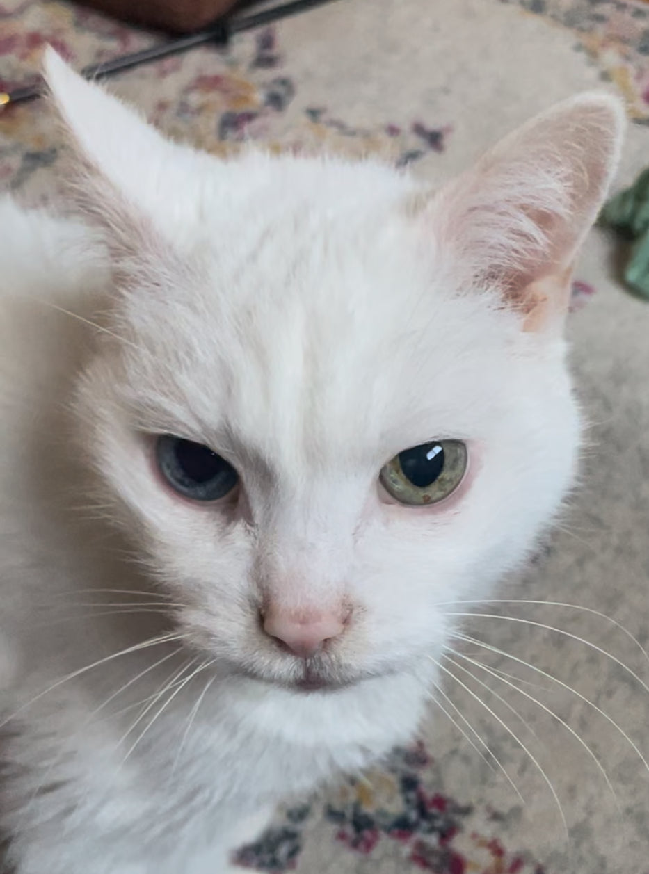 The newest addition to the Fern and Arrow co. crew is Snowball! A 23 year old boy with different coloured eyes who likes treats and getting pet until your arm hurts.