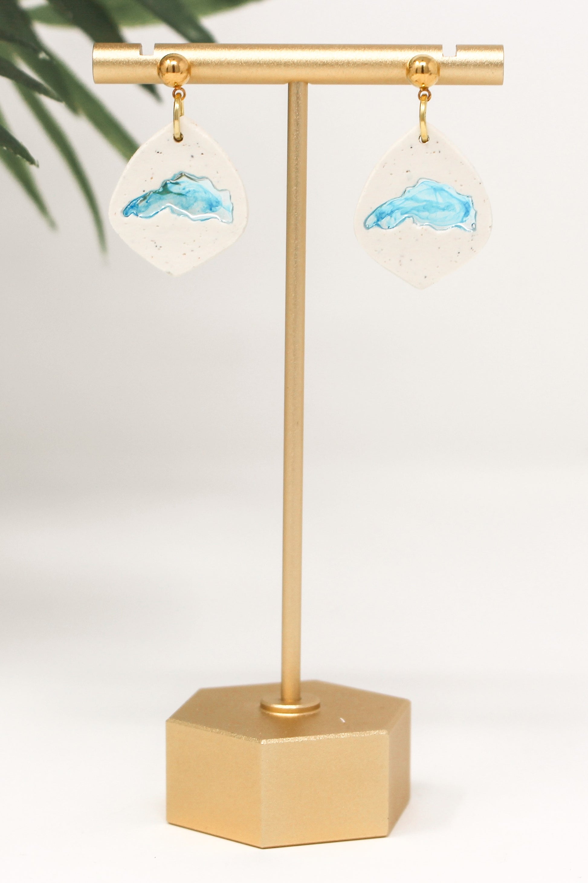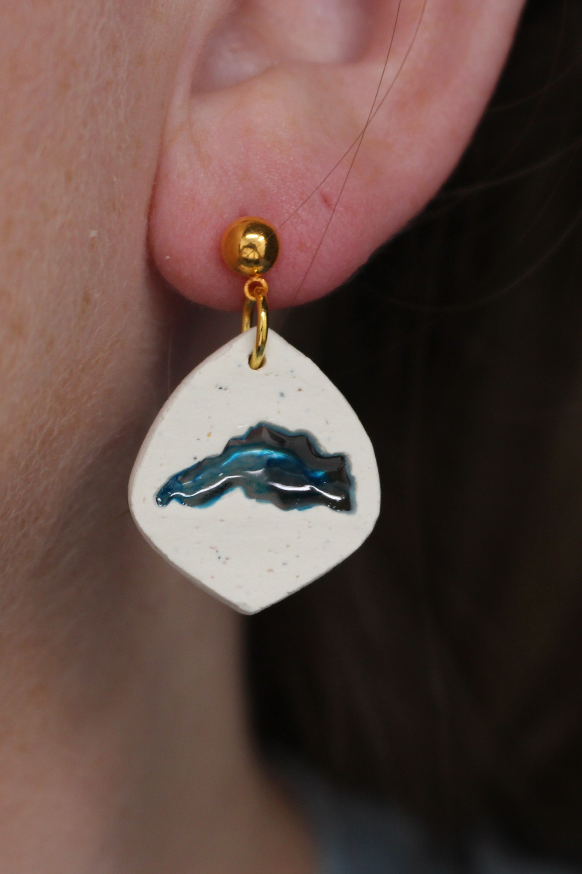 For the Northern Ontario and Lake Superior lover. These stunning earrings have sand incorporated in them and a stained glass effect of Lake Superior. Great for a gift!